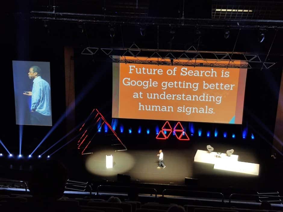 Wil fängt wirklich stark an. Er ist ein super Unterhalter – keine Frage. Er stellt die Frage, wieso man ihm zuhören soll, wieso man dem glauben soll, was er sagt. Nicht weil er seit Ewigkeiten in der SEO Industrie ist (Wil ist seit 20 Jahren SEO) sondern weil er auf „half a terabyte of search data“ sitzt.